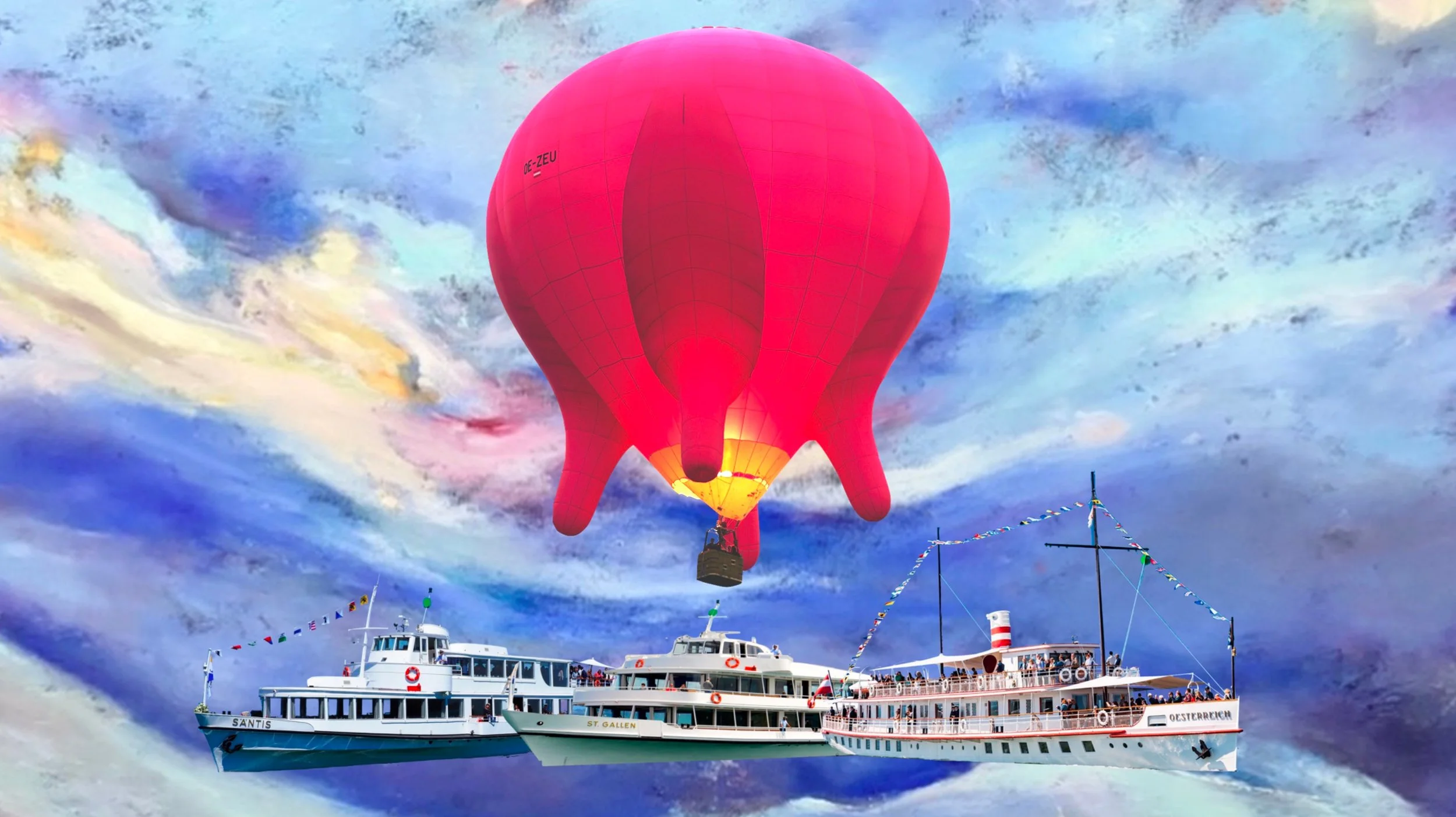 Die Schweizerische Bodensee-Schifffahrt und Historische Schifffahrt Bodenseeladen zum ersten Mal gemeinsam zu den ROMANSHORNER LUFTSPIELEN mit der sozialen Skulptur EUTER, einem Heißluftballon in Form eines gigantischen Kuheuters. Das Ballonspektakel mit einer Neuinterpretation des Alpsegens über dem Bodensee wird von der österreichischen Künstlerin Barbara Anna Husar in Szene gesetzt. Das außergewöhnliche Konzertereignis auf und über drei Schiffen – das Kunst.schiff MS Oesterreich und die beiden Schweizer Schiffe, die MS St. Gallen und die MS Säntis – ist nach den BREGENZER LUFTSPIELEN, die zweite multisensuale Inszenierung gemeinsam mit namhaften Kunstinstitutionen aus der Region Bodensee.